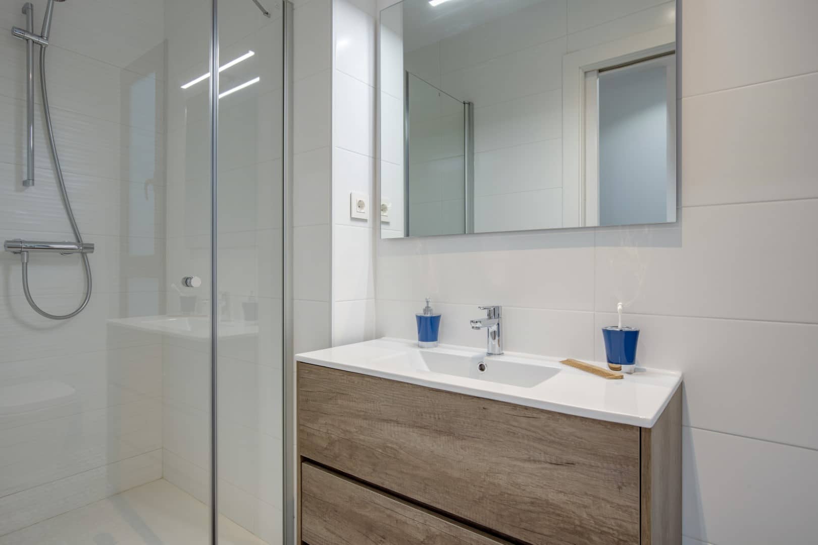 El apartamento consta de tres dormitorios, todos ellos diseñados con un estilo contemporáneo y atención al detalle. Cada habitación ofrece confortables camas, armarios para guardar tus pertenencias y una agradable atmósfera para descansar. También hay dos baños completos, equipados con ducha, donde podrás refrescarte y relajarte.